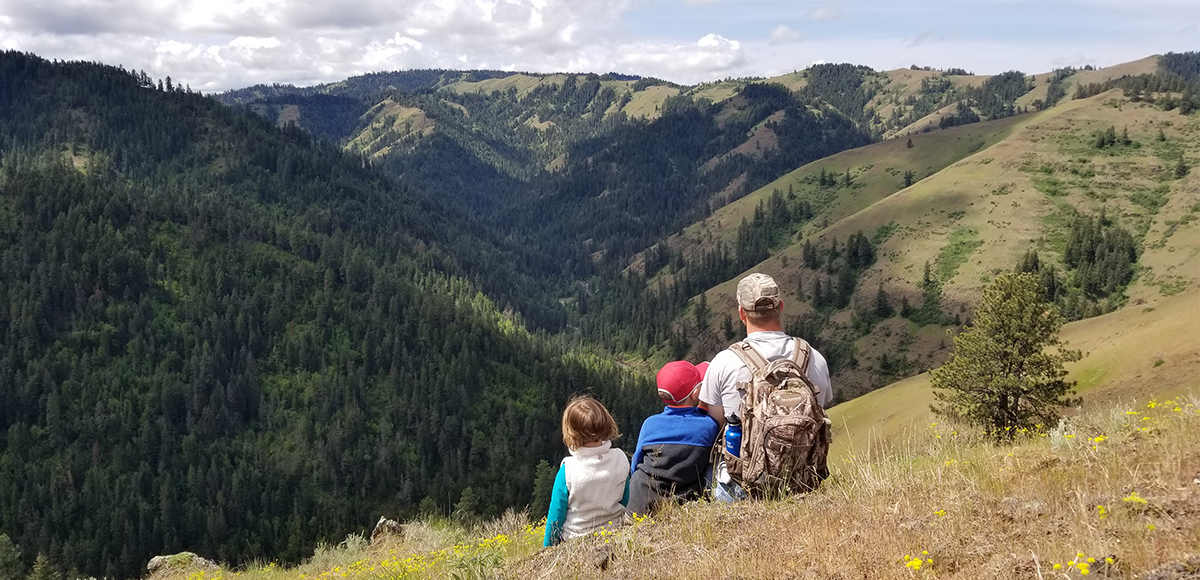 The Nine Mile Ridge Trail has a lot going for it. Access is possible from the Buck Creek Trailhead (lower) and Nine Mile Ridge Trail (upper). It is located in the North Fork Umatilla Wilderness area, so the trail is open to foot traffic and horseback riders and isn’t heavily used. At 6.8 miles, it is totally possible to conquer the entire trail in a long day, but don’t push it. Typically, as a family, we make it about 2.5 miles from the lower trailhead, which is the section that gains the most elevation. In less than a mile, the trail leaves its lush creekside drainage bottom and climbs along the hillside, traversing in and out of flora-rich gulches. The views are second to none. By the time you climb a little over 1,000 feet in just over two miles, you will need to take a snack break because it is time to take a few moments and enjoy the view. The South Fork of the Umatilla River is visible at the canyon bottom. The forest is dense on the opposing north slope, while the trail sidehills up the wildflower covered south side. This is actually a common feature of the Blue Mountains.