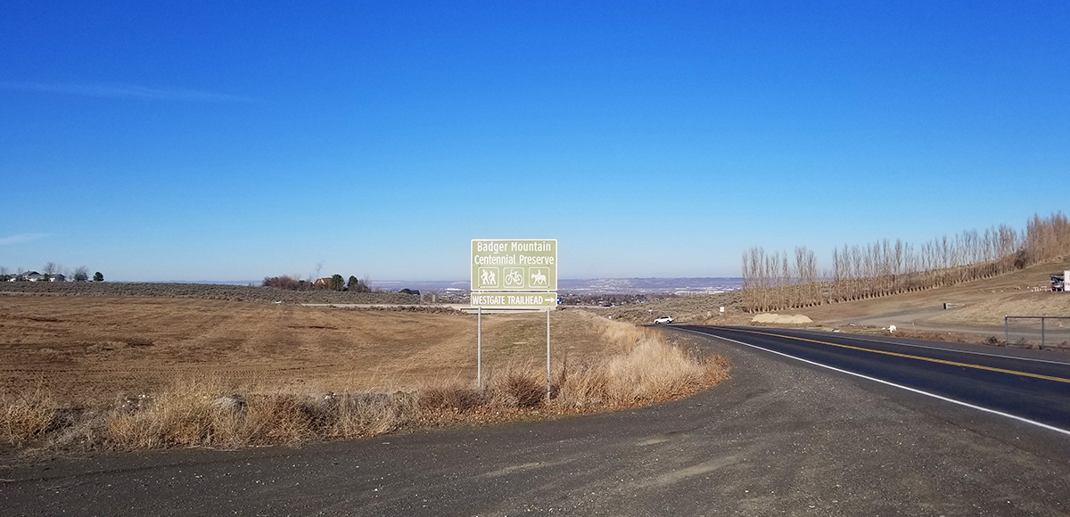 Badger Mountain Trailhead – From Walla Walla, take HWY 12 westbound 29 miles to Wallula Junction and turn right to keep on HWY 12. Continue through Pasco, cross over the Columbia River and take exit 3A putting you on Queensgate Drive. Follow for half a mile and turn left on Keene Road. Drive another half mile and turn right onto Shockley Road, which will become Queensgate Drive after a sharp left bend, drive another 1/4 mile and the parking area is on your right.