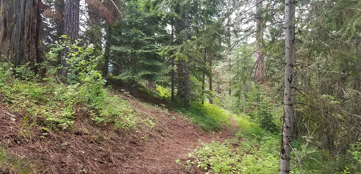 The west end of this trail starts off relatively flat for the first two miles as you make your way through young timber. Along the way you will make a few road crossings, but the trail is easy to follow. Just past the two mile mark you make a small descent with a few switchbacks.