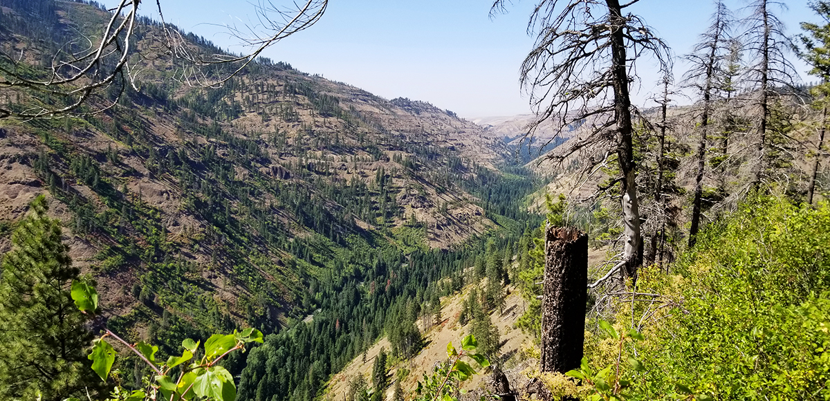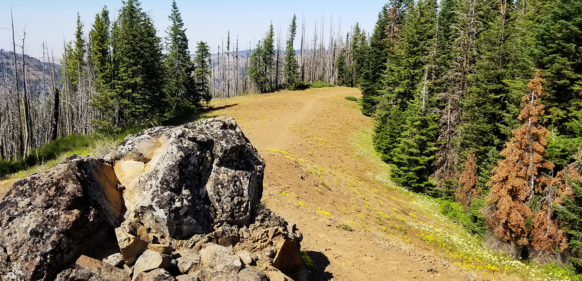 Following the North Fork of the Touchet River and nestled between Chase Mountain and Middle Point Ridge, the Middle Point Trailhead is a mere 17 miles from Dayton, WA and 48 miles from Walla Walla. The views are fantastic. Many folks might use this road in the winter on the way to Ski Bluewood, but the views in spring, summer, and fall are equally as pleasing. As the crow flies, the trailhead is almost the same latitude as Walla Walla. An excellent trail choice for folks interested in trekking a few miles as well as for those eager to spend a full day or more in the mountains.