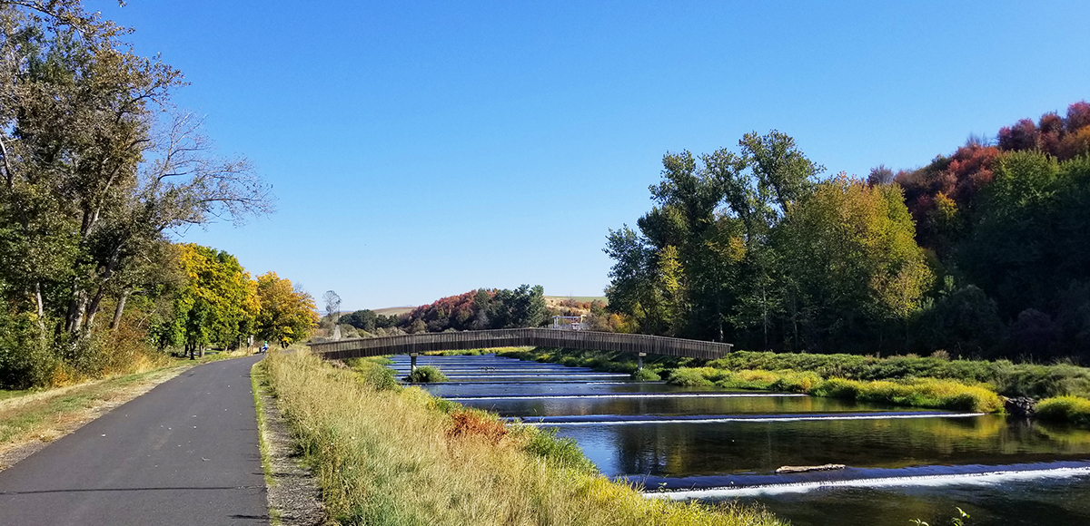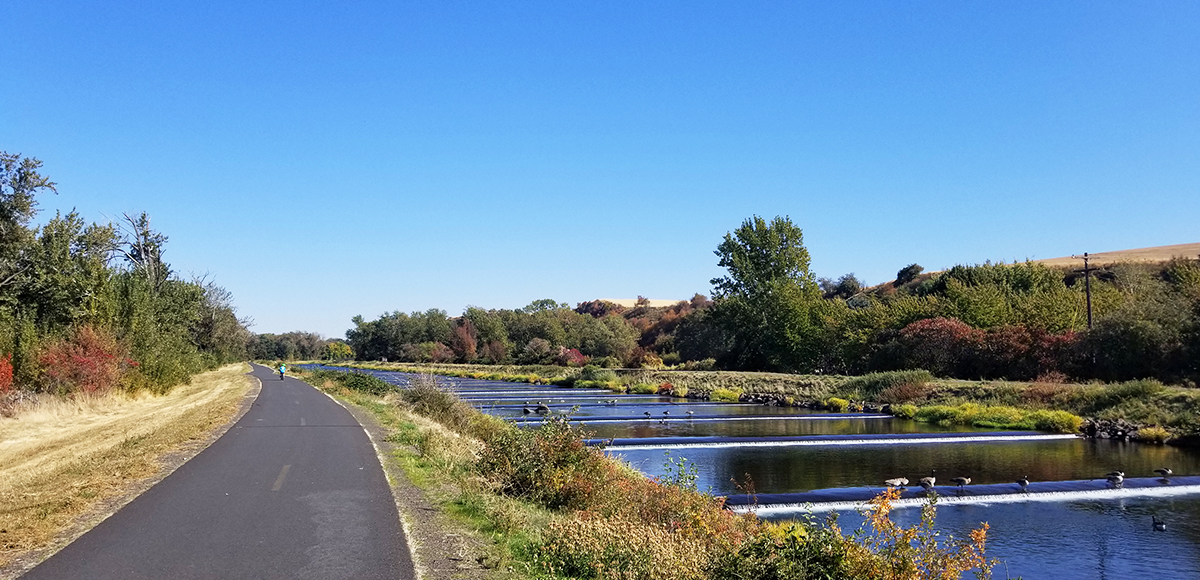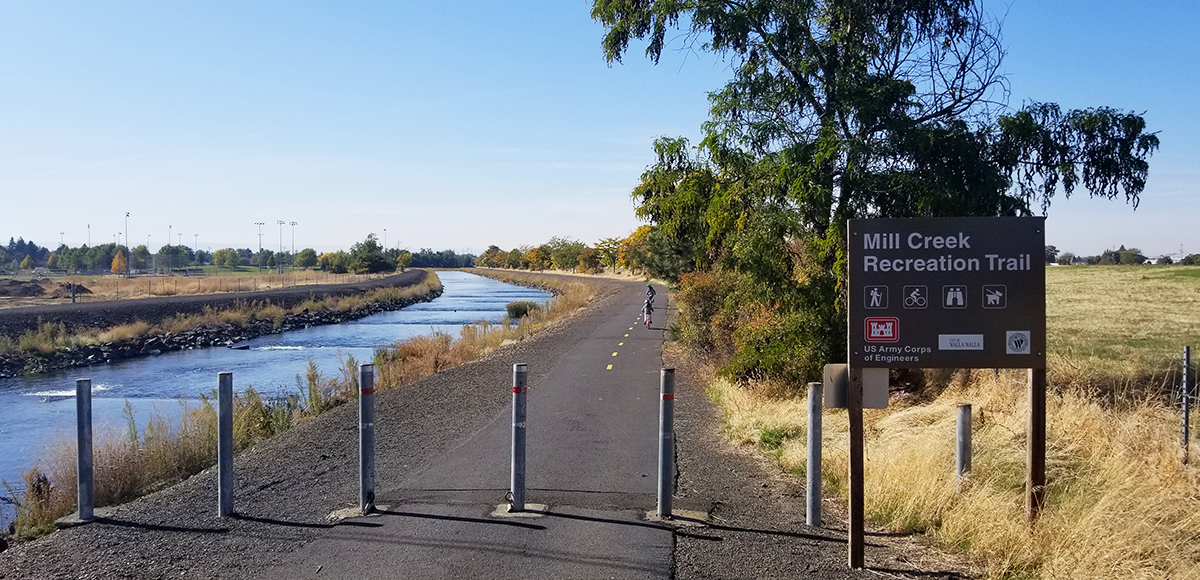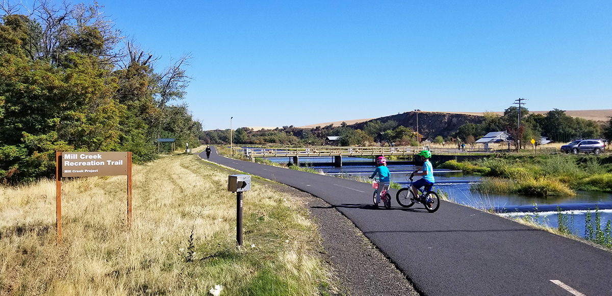Enjoy the sound of Mill Creek and views of the Blues and wildlife. There are bridges located at Rooks Park, the U.S. Corps of Engineers office, and Walla Walla Community College allowing access to the south side of Mill Creek into the Bennington Lake trail system.