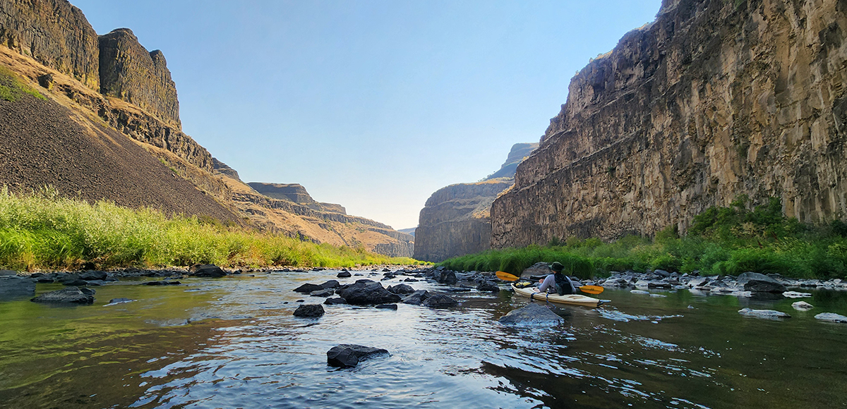 The first few miles of the Palouse are typically easy to paddle, but make sure to consider the return trip in your time and effort calculations. As the river approaches Palouse Falls a few miles prior to the plunge pool, a series of rock bars deter further exploration. A short drive down the road from the state park makes viewing the falls significantly easier and safer.