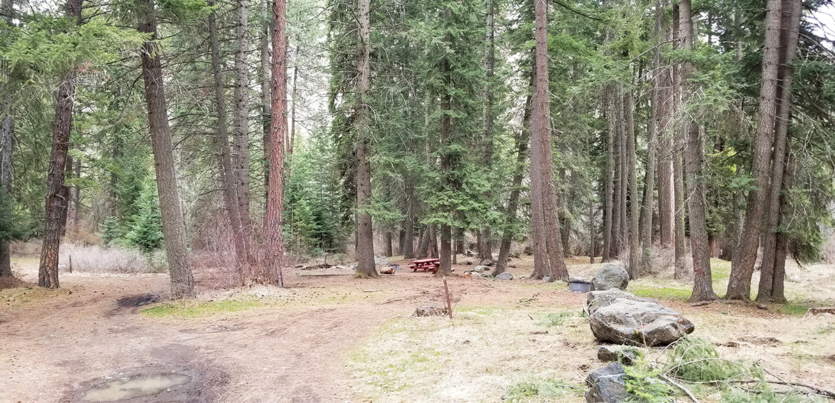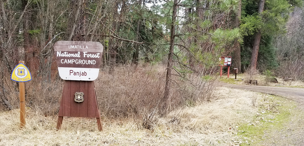 Panjab campground is very small. Having the water nearby is quite nice, and the sun rarely has a chance to shine through with all the large, beautiful trees, so expect shade. There are lots of trails in the area, and a number of stocked ponds for fishing are located back down Tucannon Road–overall a great part of the world to call home for a weekend.