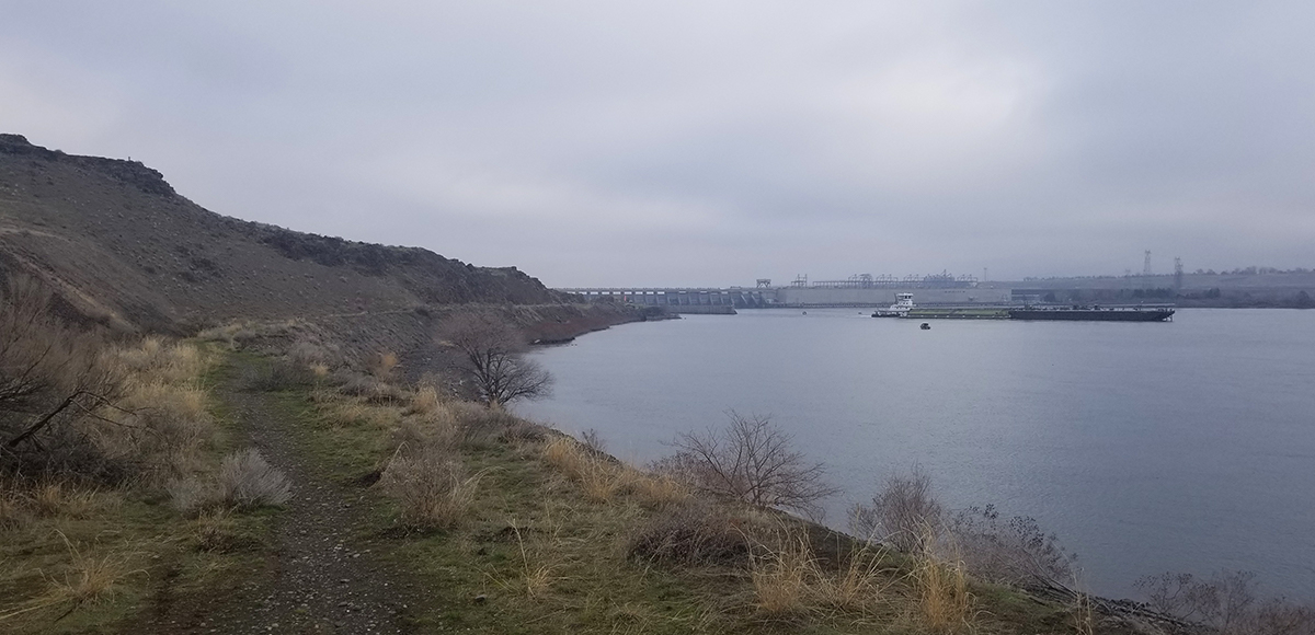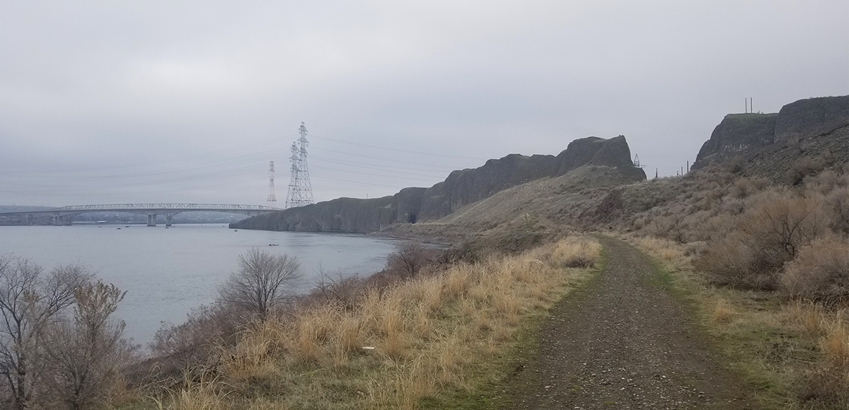 At roughly two miles in length, this out-and-back trail starts near Plymouth Park and terminates at McNary Dam. This is a short trail, easily navigated by foot or bicycle. The mostly dirt and gravel path passes through an old train tunnel as it follows the Columbia River.
