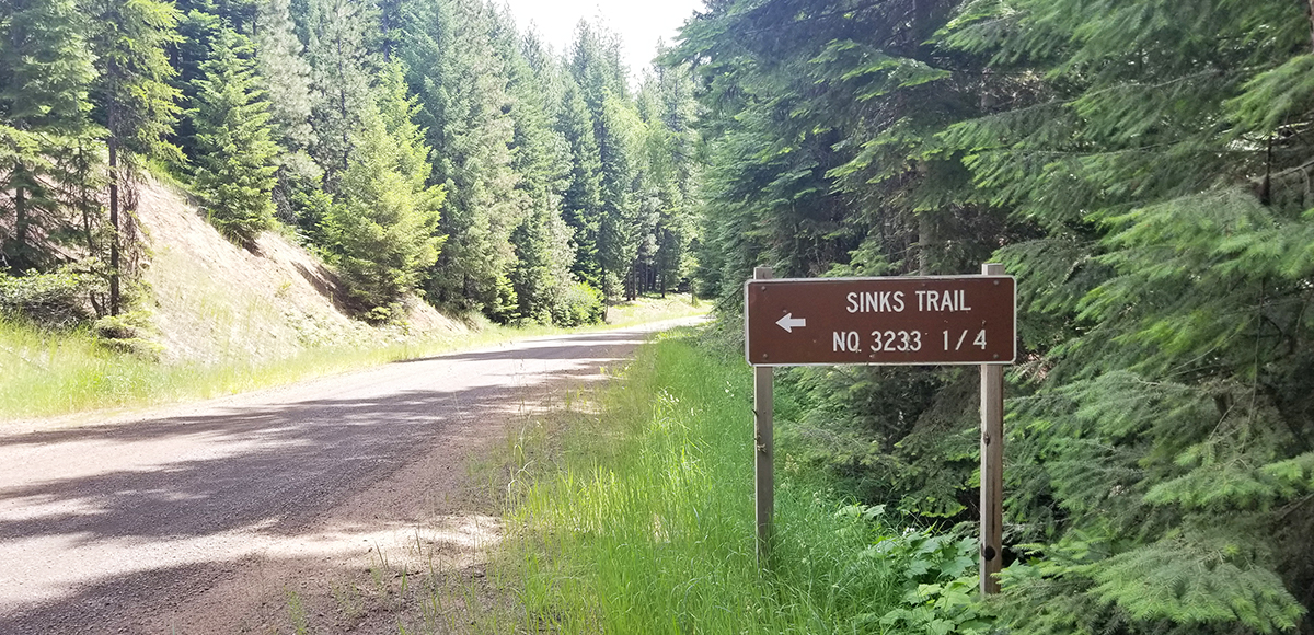 Follow NF-64 for 10 miles then turn right on NF-63. Drive another 5.5 miles and turn left to keep on NF-63 towards Elgin. Just another mile down the road, there is a sign for Sinks Trail. Park at the road gate. The trail is a short walk down the road and is marked on your left.