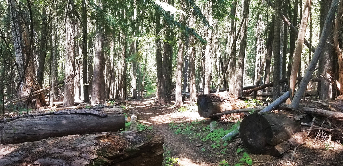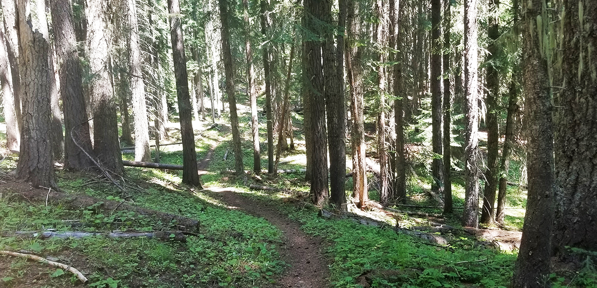 Enjoy a steady climb through old growth forest and open meadows as you make your way toward a gem of a finish line. Gaining 1,200 feet over roughly five miles makes it easy on the lungs. It is also a manageable distance for a leisurely stroll through the woods. This trail is a favorite for mountain biking.