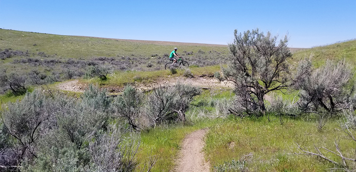 Given its location west of the Blue Mountains, you could potentially ride this trail system year-round. Actually spring, fall, and winter might be better times because there is no shade and it heats up fast. Spring is a lovely time...