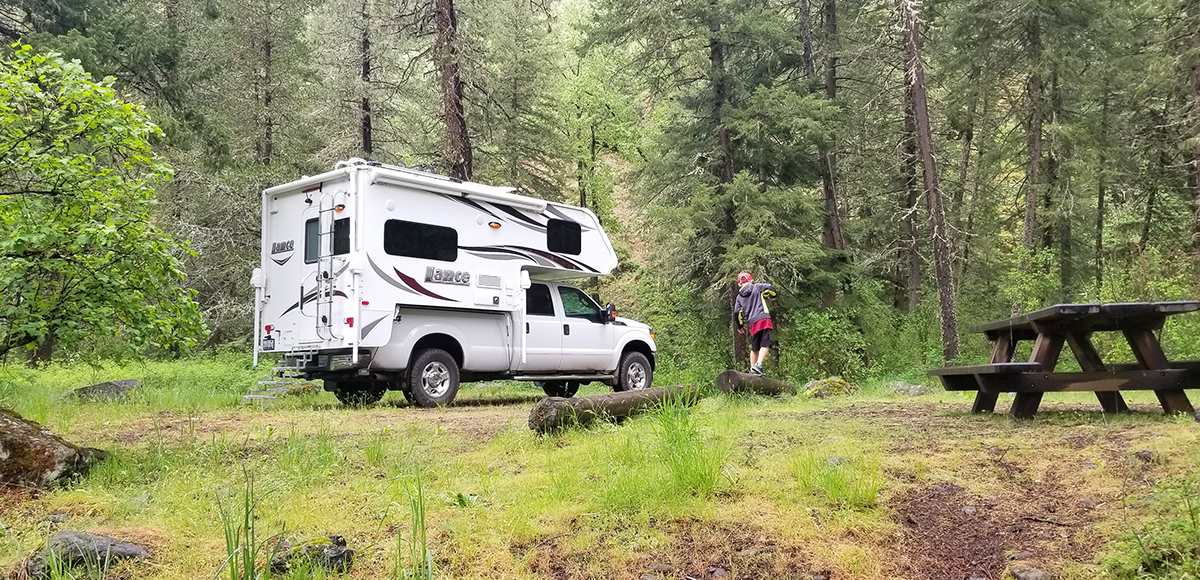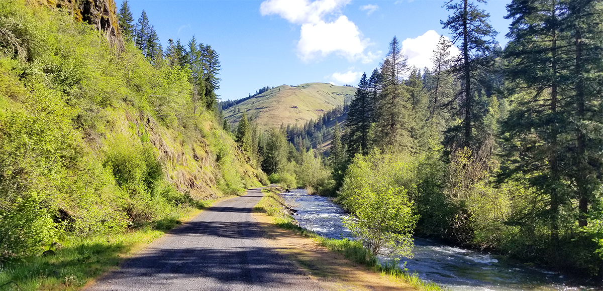 There are several options for camping along the South Fork Umatilla River. Some spots are large enough for small RVs, but be aware that turnaround space is limited. We recommend not going further than two miles past the bridge as the road is narrow, rough, and not well maintained. There is limited space to turn around, so depending on the size of your vehicle it could be extremely challenging.