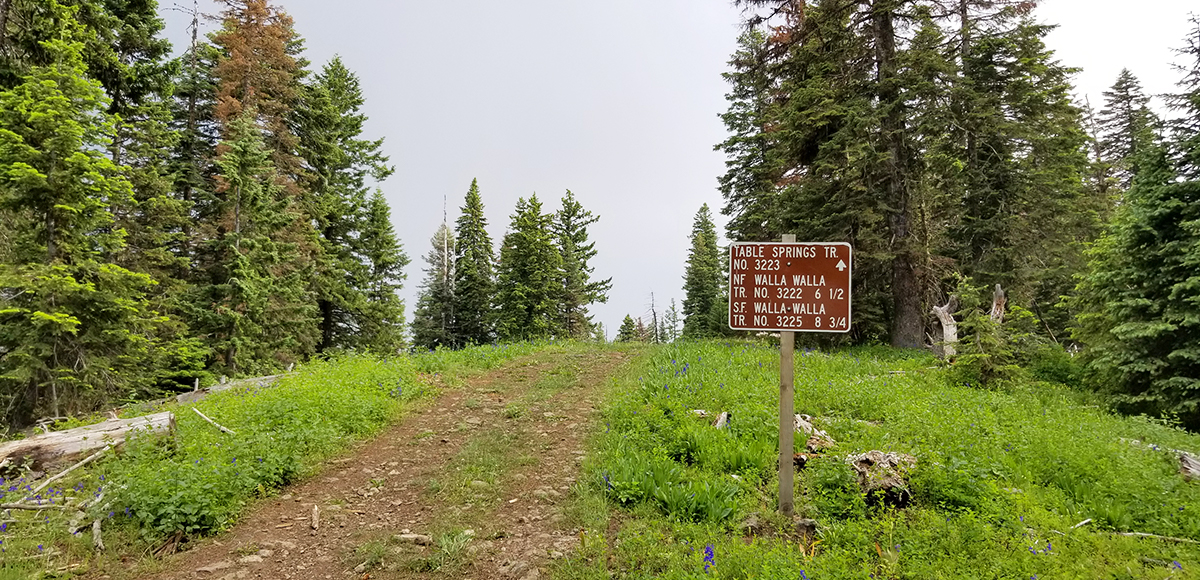 Table Springs/ Bear Creek Trail (#3223) totals 8.5 miles in length and begins atop Table Springs Ridge at the end of NF-6512 making its way down to connect with both the North Fork Walla Walla Trail (#3222) and South Fork Walla Walla Trail (#3225).