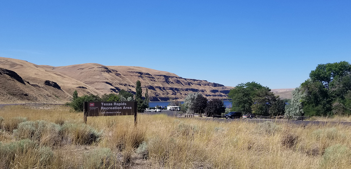 From Walla Walla, take HWY 125 north for three miles and turn left on Harvey Shaw Road. Follow Harvey Shaw Road for 42 miles to its end at the junction with HWY 261 and turn right. Take HWY 261 for five miles and turn left onto Little Goose Dam Road. Drive another five miles to the entrance of Texas Rapids Recreation Area (Lake Herbert G. West).