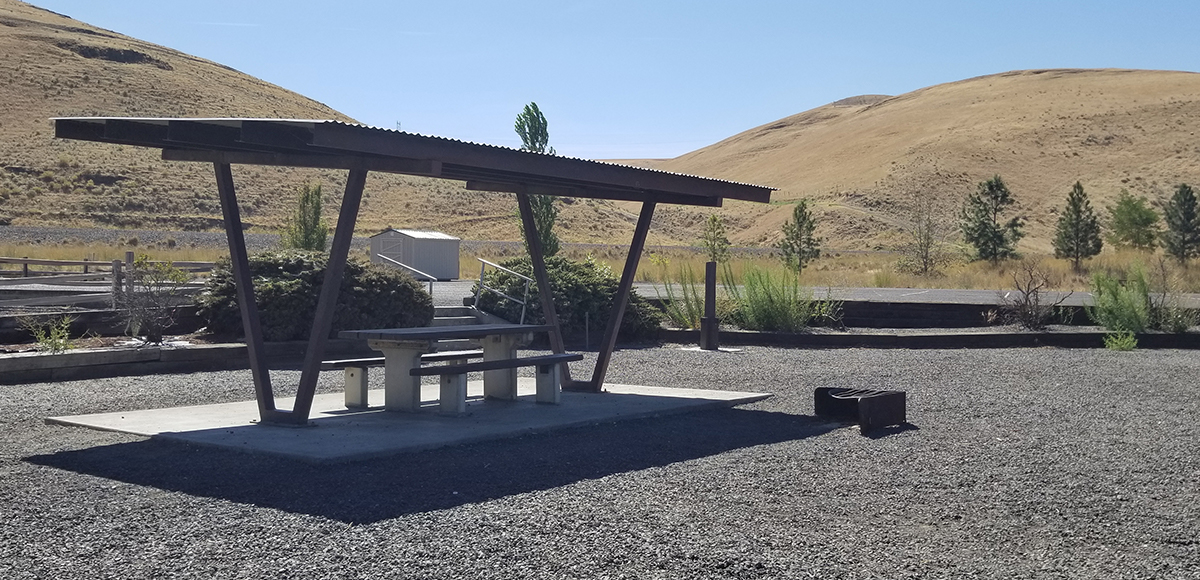 - The camping area has fire pits and picnic tables. The day-use area offers ADA accessible covered picnic tables and fire pits as well as a restrooms (flush in summer/ vault in winter). The single lane boat ramp launches into the Snake River.