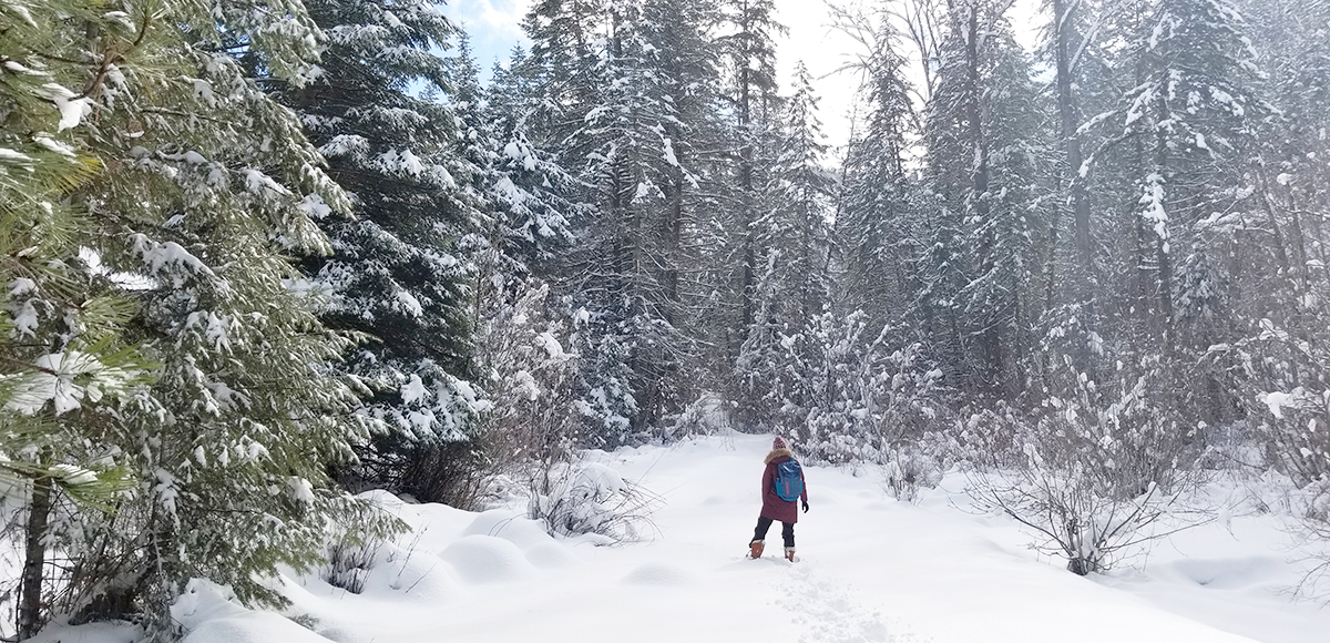 If visiting the West Tiger Creek Trail, you really can’t hike all that far before meeting the creek. That being said, it is still worth the jaunt down the hill–the area looks entirely different covered in snow. After enjoying the sound of a trickling creek, head on up the road. The grade is pretty manageable, so you’ll be able to chat with your fellow snow enthusiasts. Enjoy views of the mountains, forest, and hopefully get a little sun.