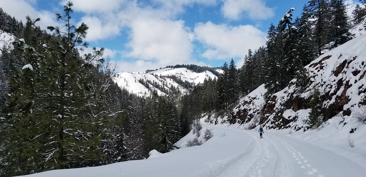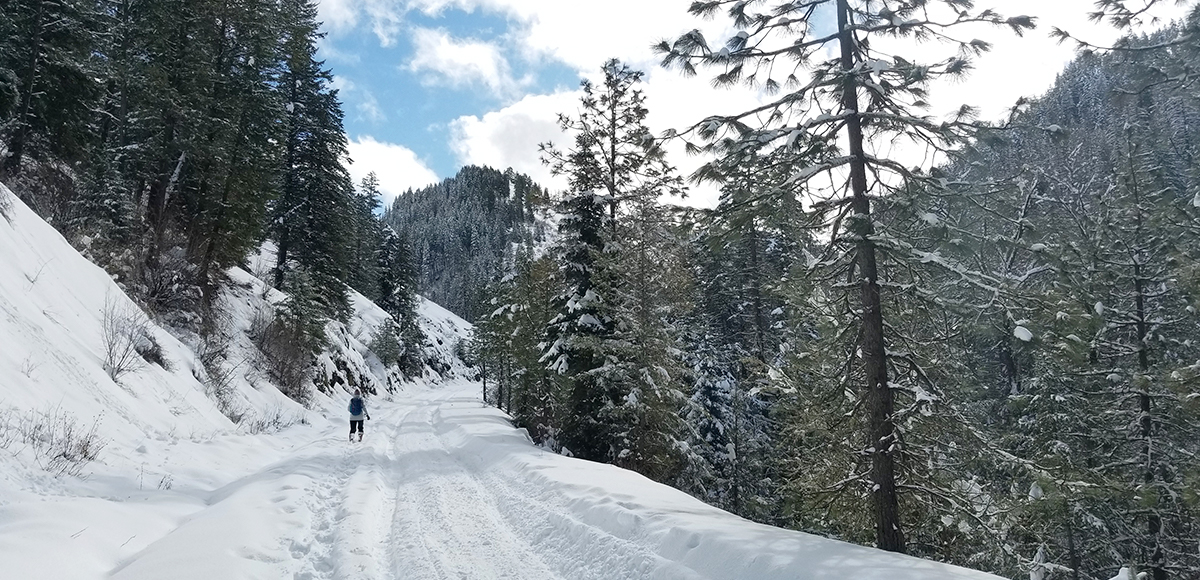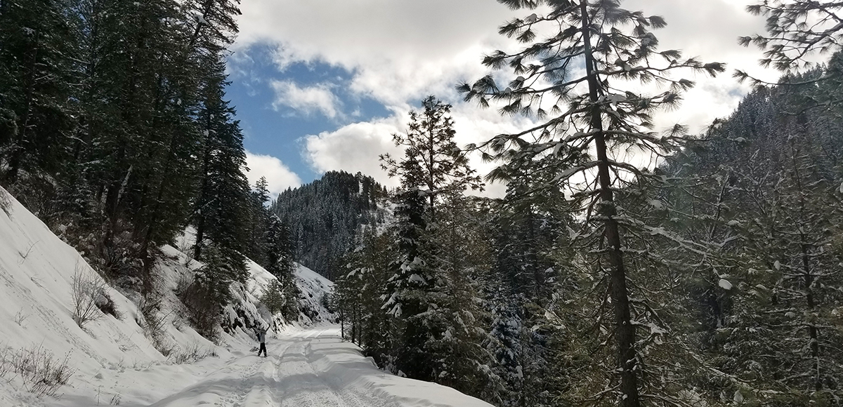 The West Tiger Creek Trail is a viable option to explore, although there are currently no structured crossings over the creek, so this is likely a spot to wander around. The Forest Service gate is approximately ½ mile up the road from West Tiger Creek Trail, and snow enthusiasts are allowed to travel beyond the gate.