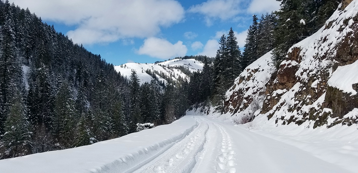A local gateway into the Umatilla National Forest, Tiger Creek Road (sometimes referred to as Tiger Ridge Road or Tiger Canyon Road) is not maintained in the winter making it an excellent candidate for snow sports. When the snow is low on the mountains, this road is often just high enough to escape the fog.