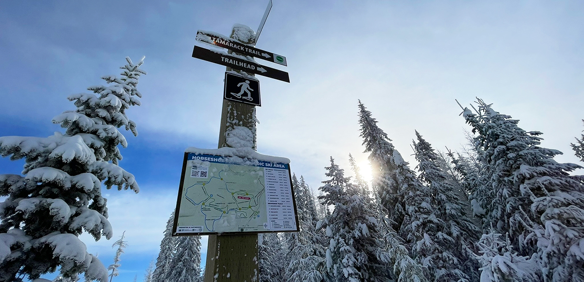 Signage at the Horseshoe Prairie Nordic Ski Area (Photo Credit: Gwen Dildine)Forever grateful for all the work of the Blue Mountain Land Trust’s Blue Crew for bringing the Horseshoe Prairie Nordic Ski Area back to life. With groomed trails, a warming hut, signage everywhere, and an updated map, this is a phenomenal place to spend the winter.