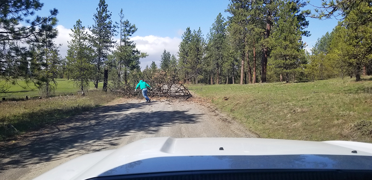 Photo Credit: Gwen DildineThis adventure took us up Tiger Canyon. We thought we could do a loop from Walla Walla, along Kendal Skyline Drive, and finish in Dayton camping at Lewis and Clark Trail State Park. Snow stopped us. A thunderstorm rolled in and created some slick roads for a bit. We were lucky weather stopped us as that trip would have been disastrous in a camper.