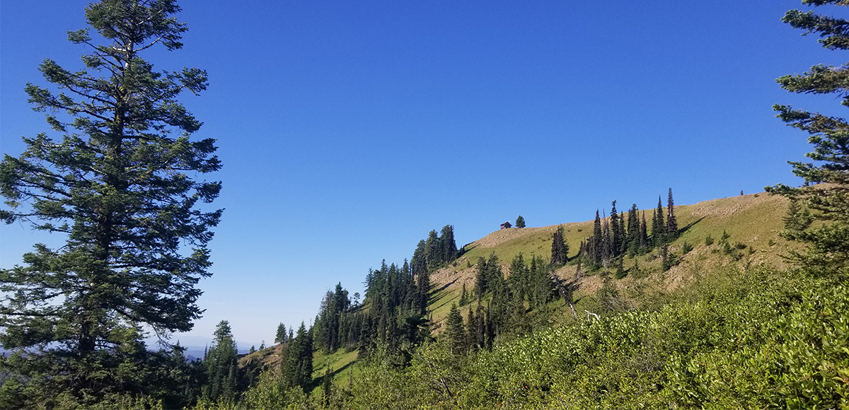 The first day began on a Friday evening. I left our home in Walla Walla a little after 5 pm and arrived at the trailhead around 7 pm. The first leg of the trip was a three mile hike to the Oregon Butte Lookout to make camp before dropping further into the Wenaha-Tucannon Wilderness via the Smooth Ridge Trail. There were a few other camps already established by the time I made my summit, but I was able to snag a great site just off the trail. As I ate a late dinner of beef jerky while watching the sunset, I was greeted by the host stationed at the lookout.