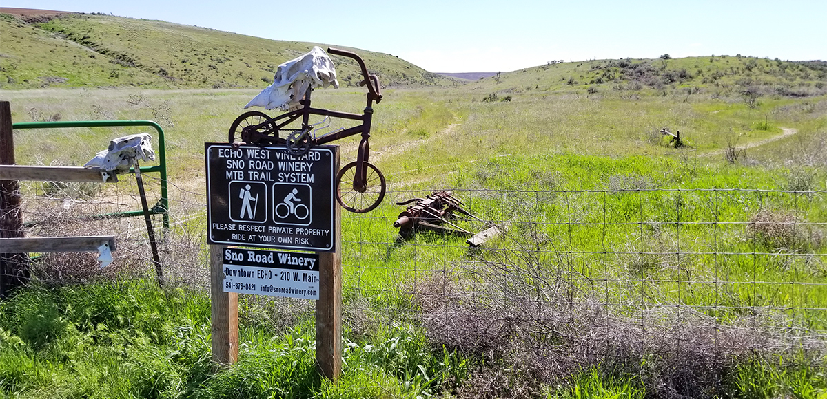 Photo Credit: Steve DildineGiven its location west of the Blue Mountains, you could potentially ride the Sno Road Winery MTB Trail System year-round. Actually spring, fall, and winter might be better times because there is no shade and it heats up fast. Spring is a lovely time of year as there are many different wildflowers, the sagebrush is especially fragrant, and the pollinators are hard at work.