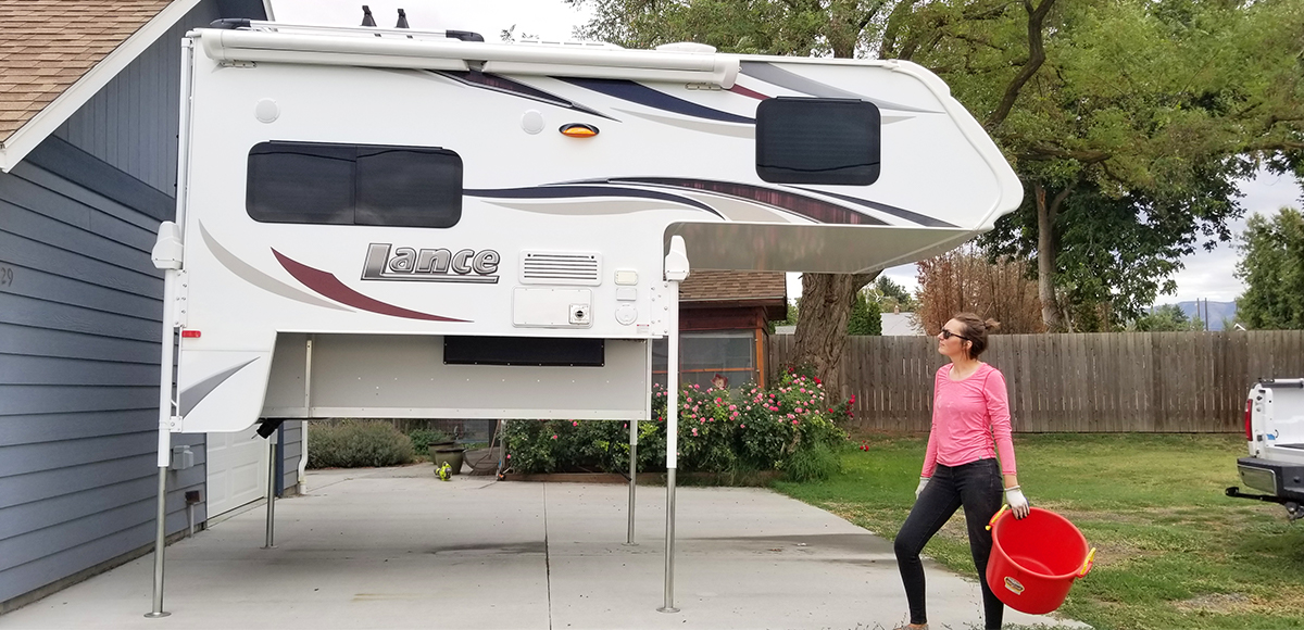 Ours sits on a concrete slab, but we do carry jack pads that distribute the weight over a larger surface area if we ever need to unload on dirt or grass. It would be a bad day if you were to unload on a soft surface and it sank down far enough that you couldn’t get the truck back under to load it. Speaking of loading, this is where practice comes in. The first time I attempted to load our camper I had my wife on one side and another family member on the other, and it took 30 minutes. A little more this way, too far that way, you are crooked. I thought more eyes would make it go faster. Not so much. I find that doing it on my own using the wheel wells in the truck bed as a guide makes the process more efficient and timely.